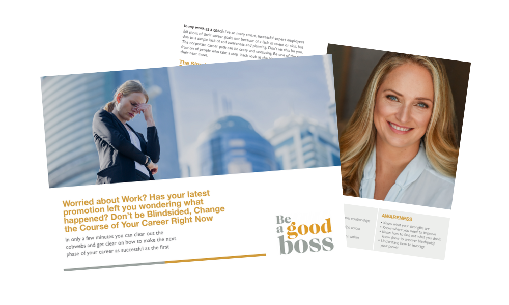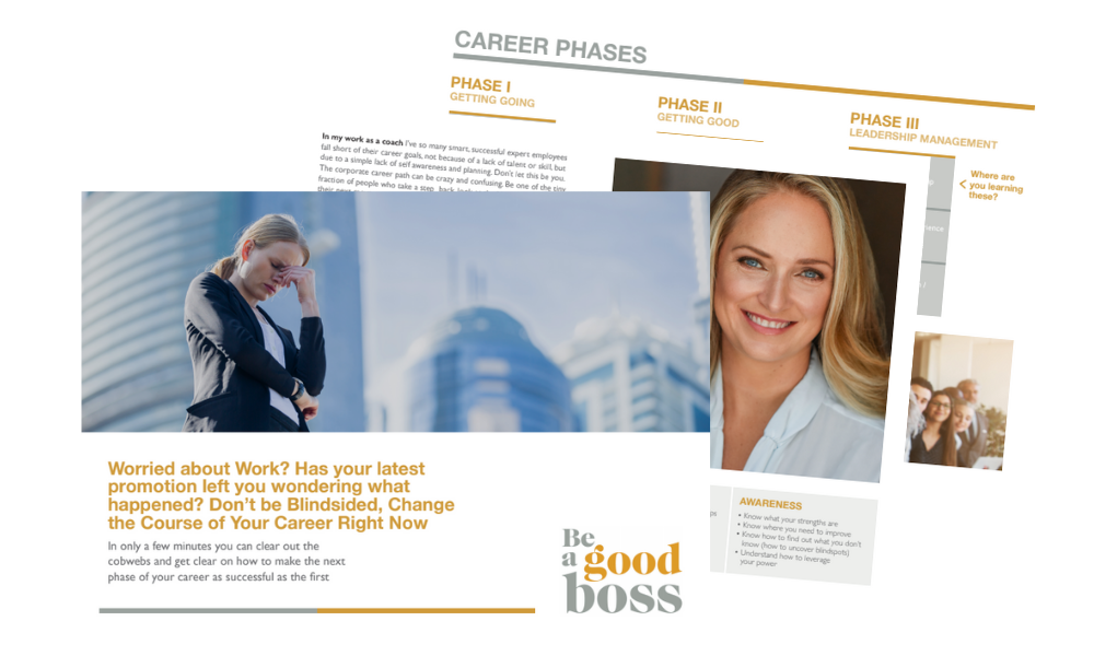The “5 Minute Leadership Roadmap” is an easy to use tool that tells you right away where you are as a boss AND what you can change to lose the anxiety and increase your impact.